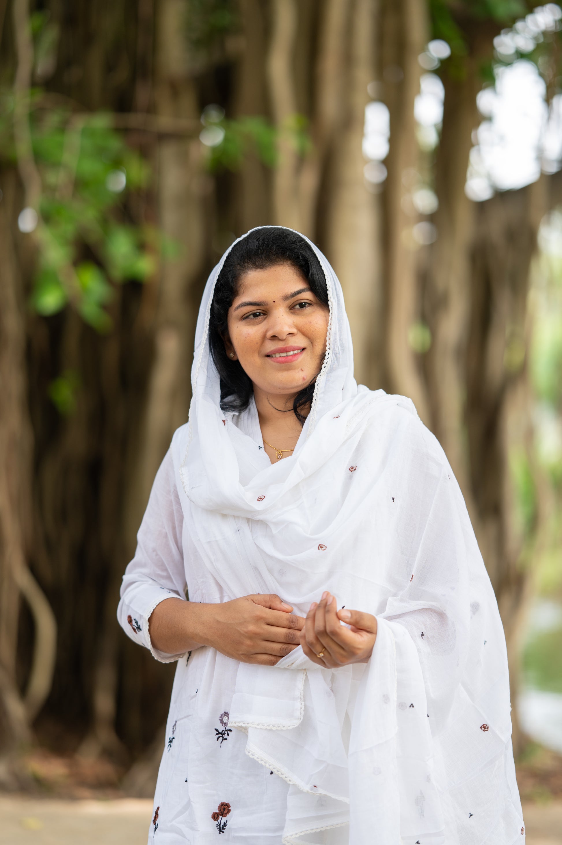 White Embroidered Mul Cotton Suit Set